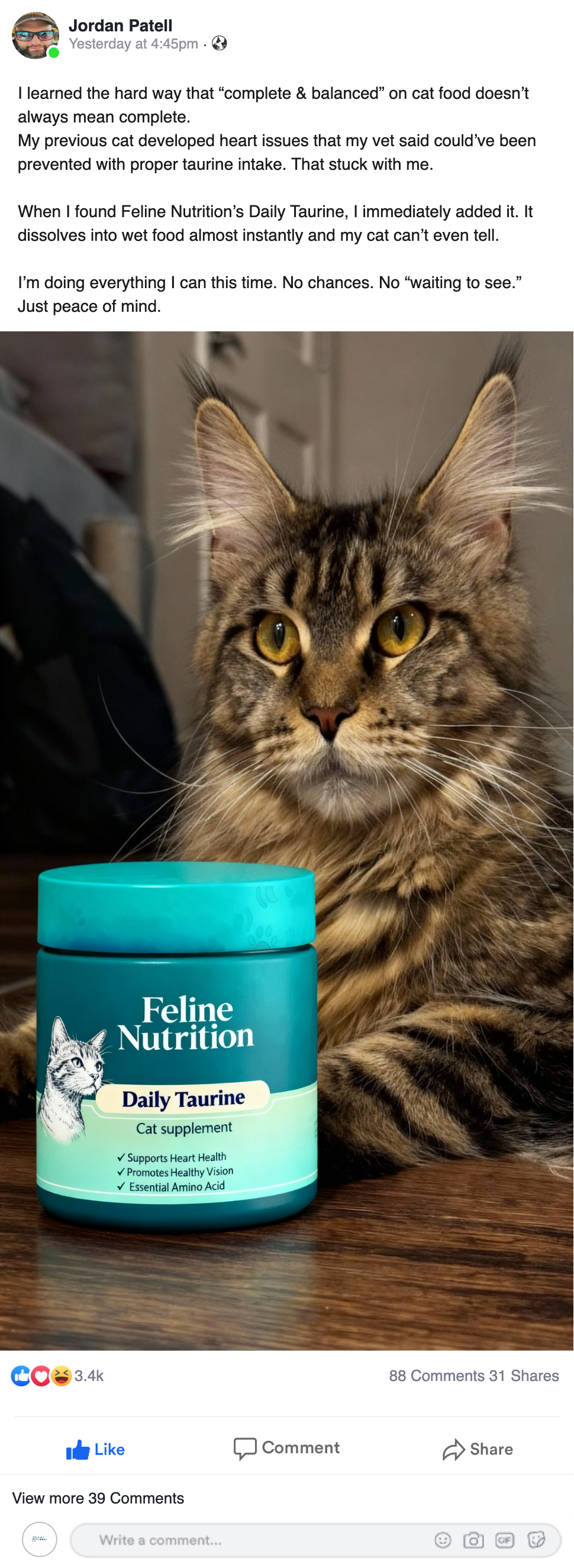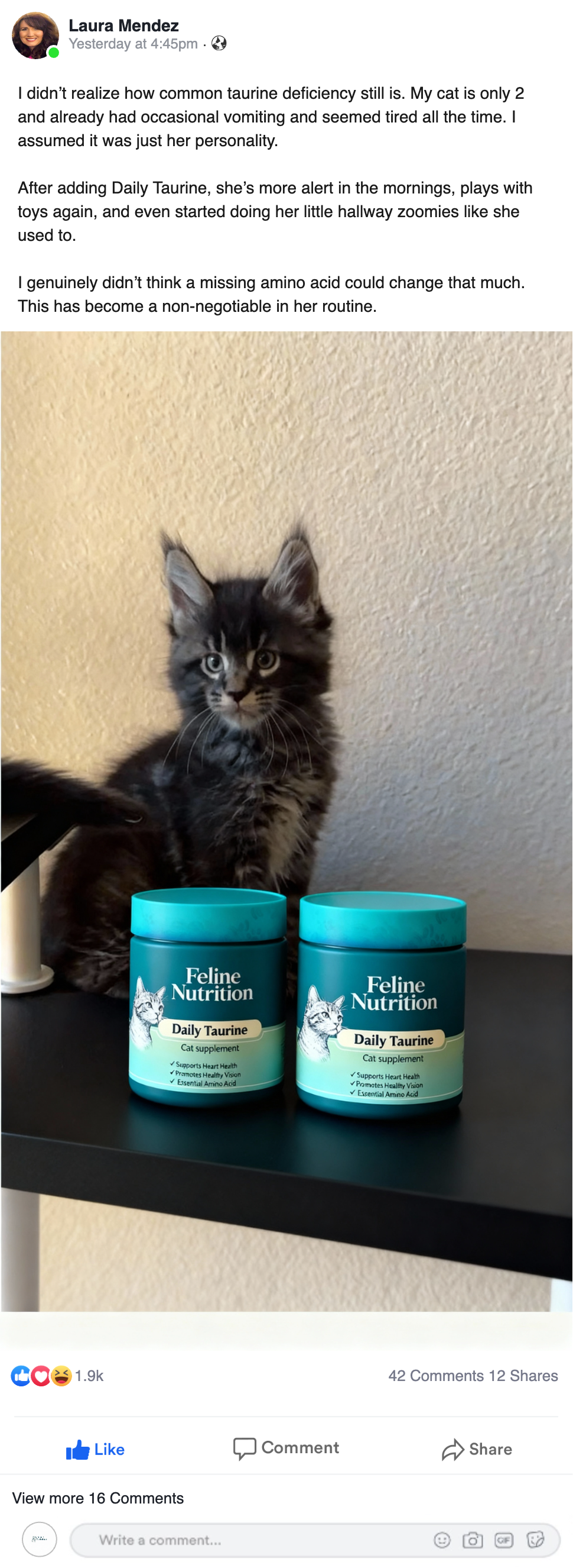 Consistent daily taurine intake is one of the simplest ways to protect your cat’s long-term wellness.